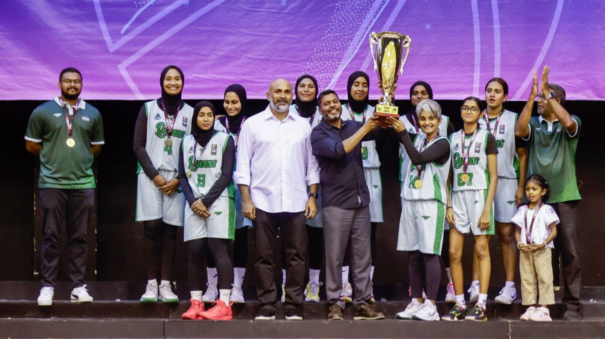 ޤައުމީ ބާސްކެޓްބޯޅަ މުބާރާތުގެ އަންހެން ޑިވިޝަނުގެ ޗެމްޕިއަންކަން ހޯދި ކުއީންސް ބާސްކެޓްބޯލް ކުލަބު --- ފޮޓޯ: ޕީއެސްއެމް ނިއުސް