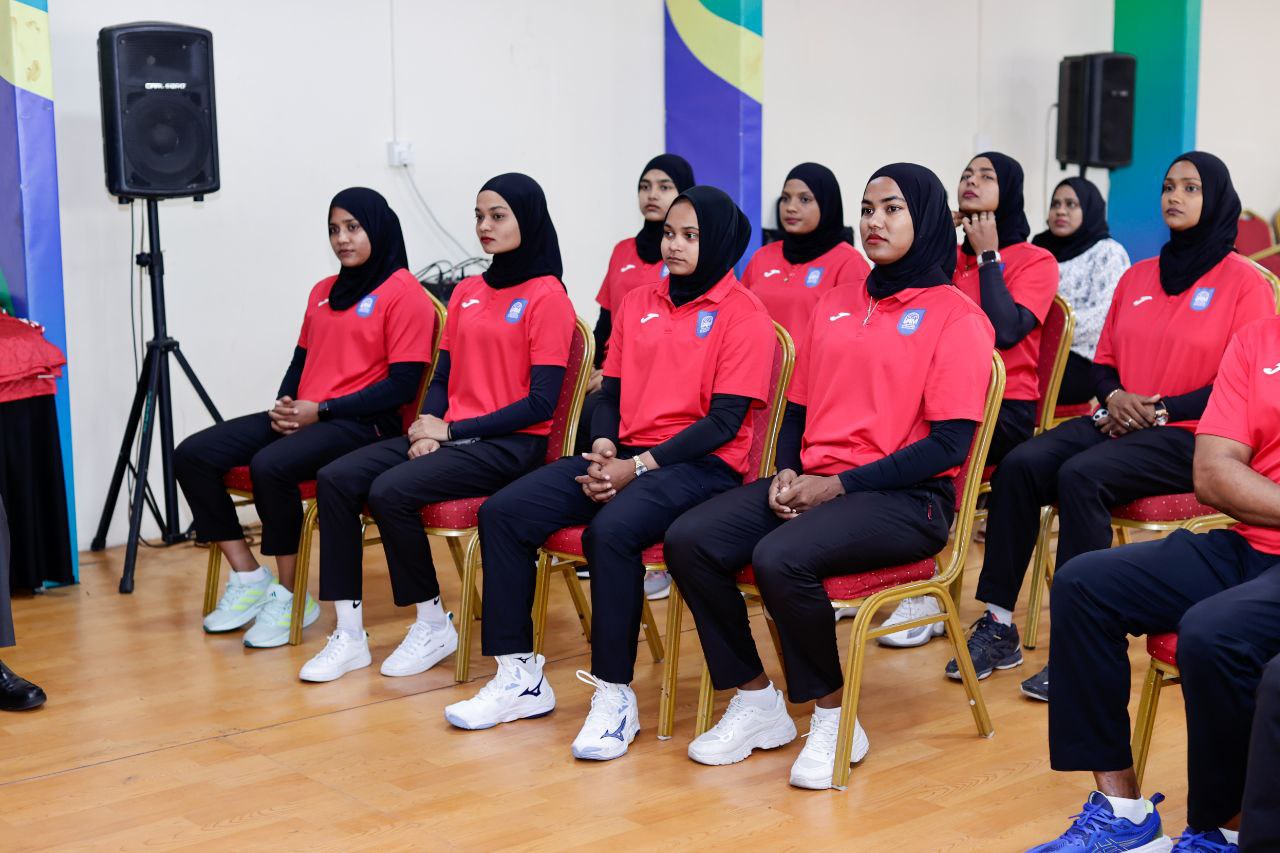 ވިމެންސް ކާވާ ކަޕް 2025 ގައި ވާދަކުރާ ރާއްޖޭގެ ސީނިއަރ އަންހެން ޓީމުގެ ކެޕްޓަން ހައްވާ ރާޝިދާއަށް ނައިބު ރައީސް ޖޯޒީ ހަވާލުކޮށްދެއްވަނީ - ފޮޓޯ: ޕީއެސްއެމް ނިއުސް
