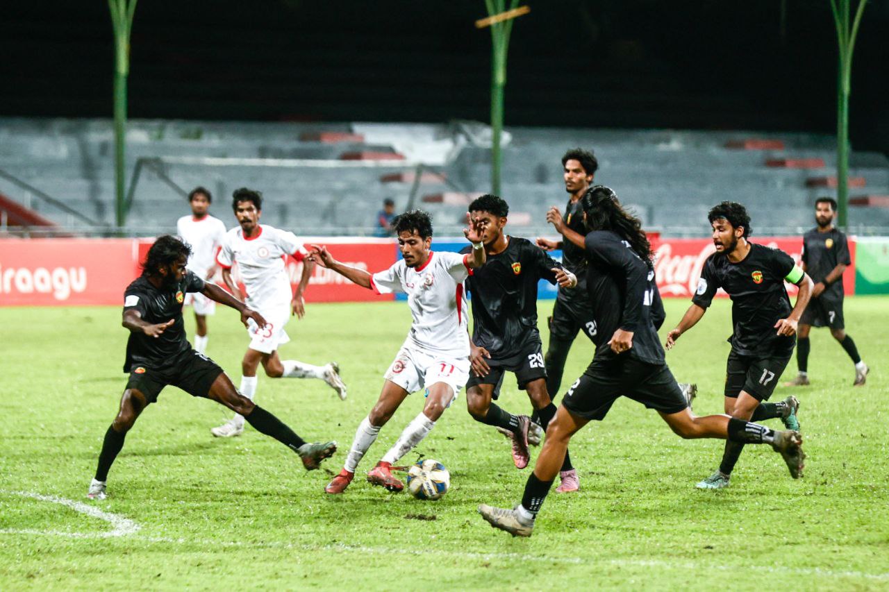 ދިރާގު ދިވެހި ޕްރިމިއަރ ލީގުގައި ޔުނައިޓެޑް ވިކްޓަރީ (ޔޫވީ) އާއި ބުރު ސްޕޯޓްސް ބައްދަލުކުރި މެޗުގެ ތެރެއިން --- ފޮޓޯ: ޕީއެސްއެމް ނިއުސް